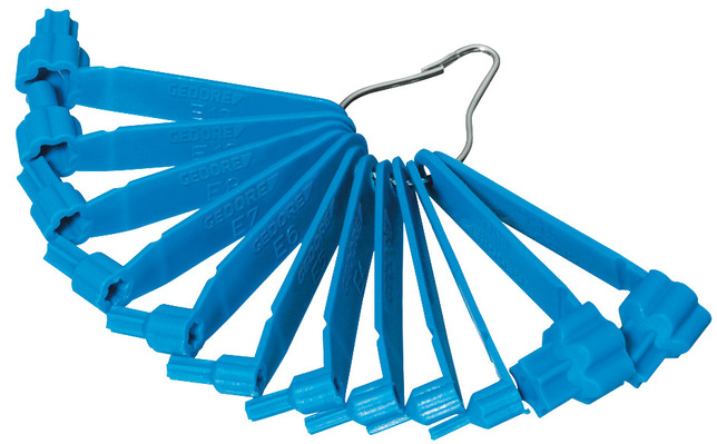 Na jednoduché určenie veľkosti skrutiek TX, vnútorné od E4-E16, vonkajšie od T10-T60