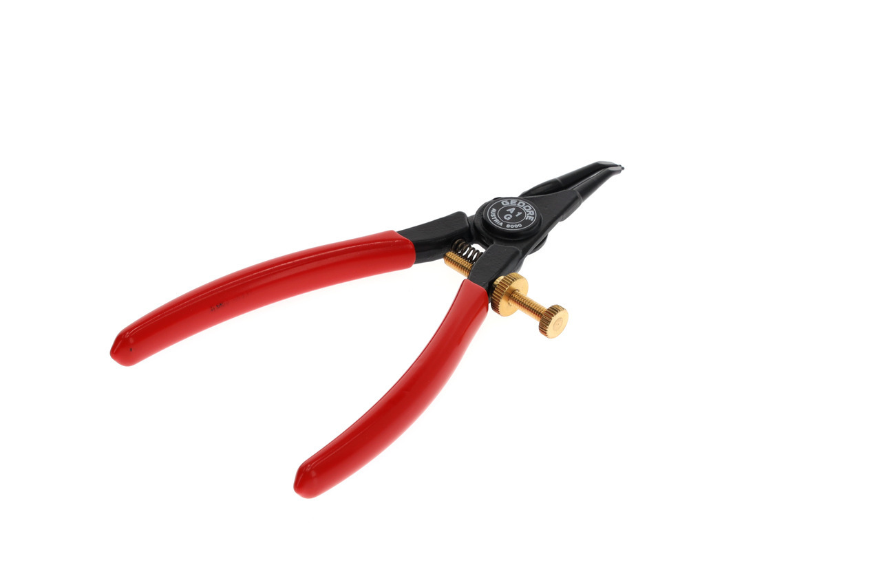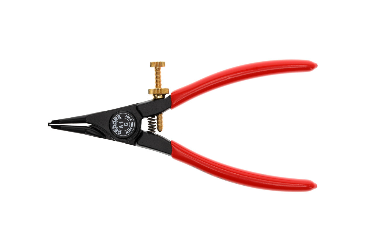 Pre na hriadele bez zapustenia, Pre samoblokujúce sa upínacie krúžky Seeger a pre samoblokujúce sa upínacie krúžky Benzinga, Konštrukcia podobná DIN 5254 forma A, A 0G - A 1G = uhlové čeľuste 30°, A 2G = priame hroty, So rozťahovacou pružinou a regulačným skrutkou pre pevný doraz, Vysoká bezpečnosť montáže, pevný doraz zabraňuje preťaženiu najmenších zabezpečovacích krúžkov., Kovaná GEDORE špeciálna chrómovo-vanádiová oceľ kalená a popúšťaná, Presne opracované, kalené v oleji a popúšťané, Čierne, s červenými, ponorenými rukoväťami