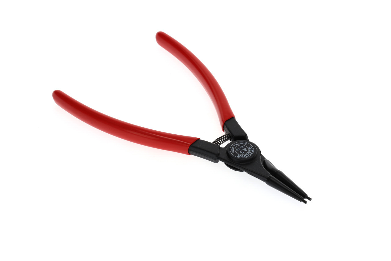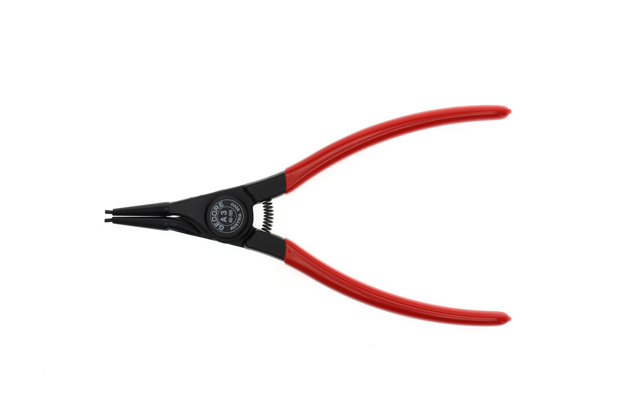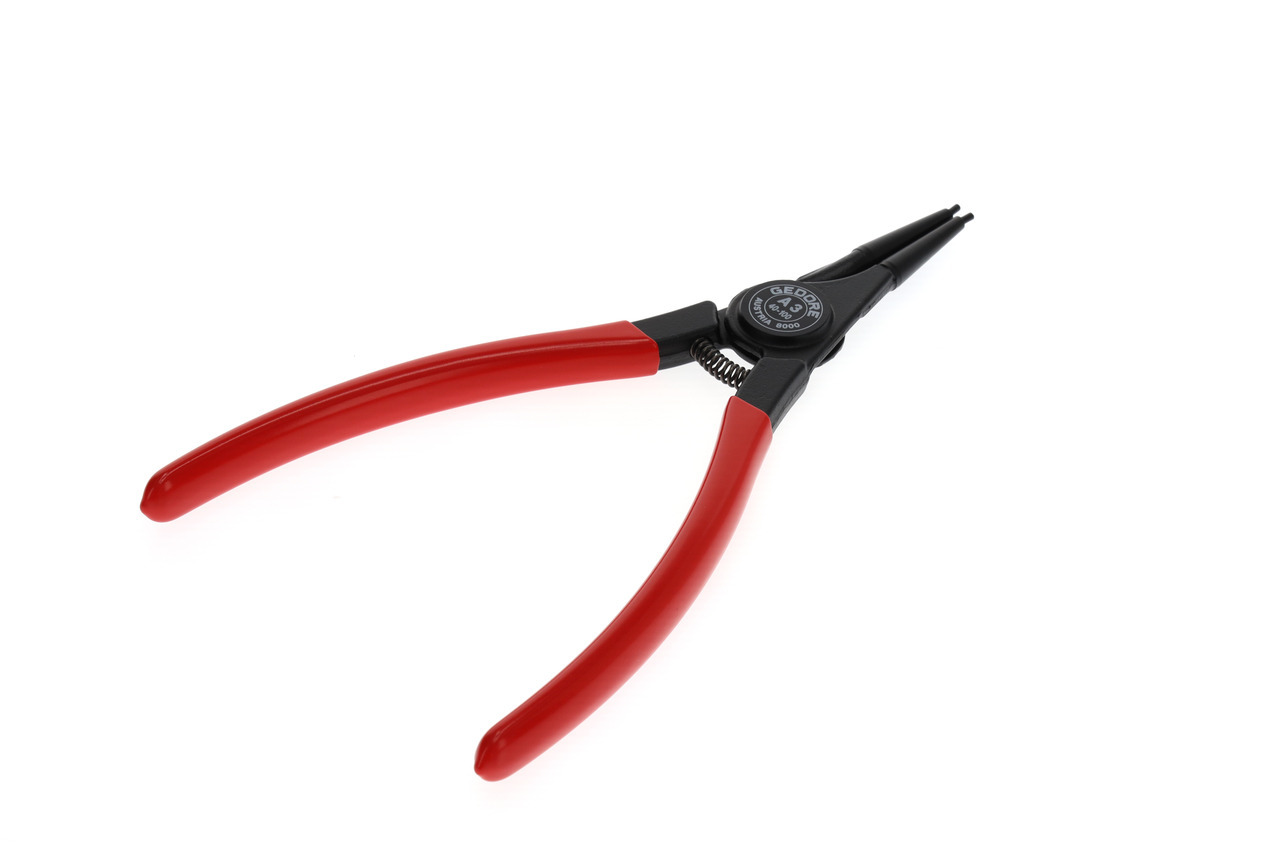 Dla krúžkov zabezpečujúcich podľa DIN 471, DIN 983, Konštrukcia podľa DIN 5254 forma A, Priame čeľuste, So pružinou otvárajúcou, S upínacím zabezpečením, Kovaná GEDORE chrómovo-vanádiová špeciálna oceľ kalená a popúšťaná, Presne opracované, kalené v oleji a popúšťané, Čierna, s modrými, ponorenými rukoväťami