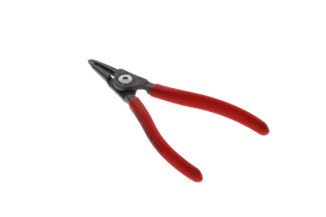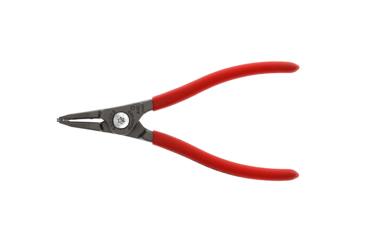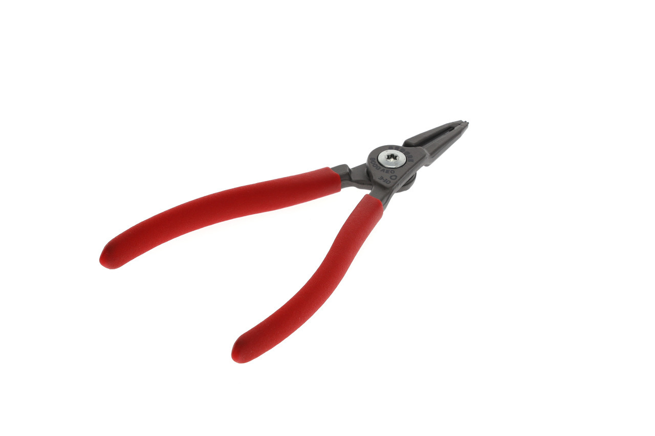 Na krúžky zabezpečujúce podľa DIN 471, DIN 983, Konštrukcia podľa DIN 5254 forma A, Hladké čeľuste, S vnútornou pružinou otvárajúcou, Telo klieští zo špeciálnej ocele chróm-vanád, Vytláčané koncovky vyrobené z veľmi odolnej proti opotrebeniu ocele ložiskovej, Odolná voči skrúteniu geometria koncovky, Skrutkové spojenie, Oceľovošedá, s protišmykovými rukoväťami ponorenými