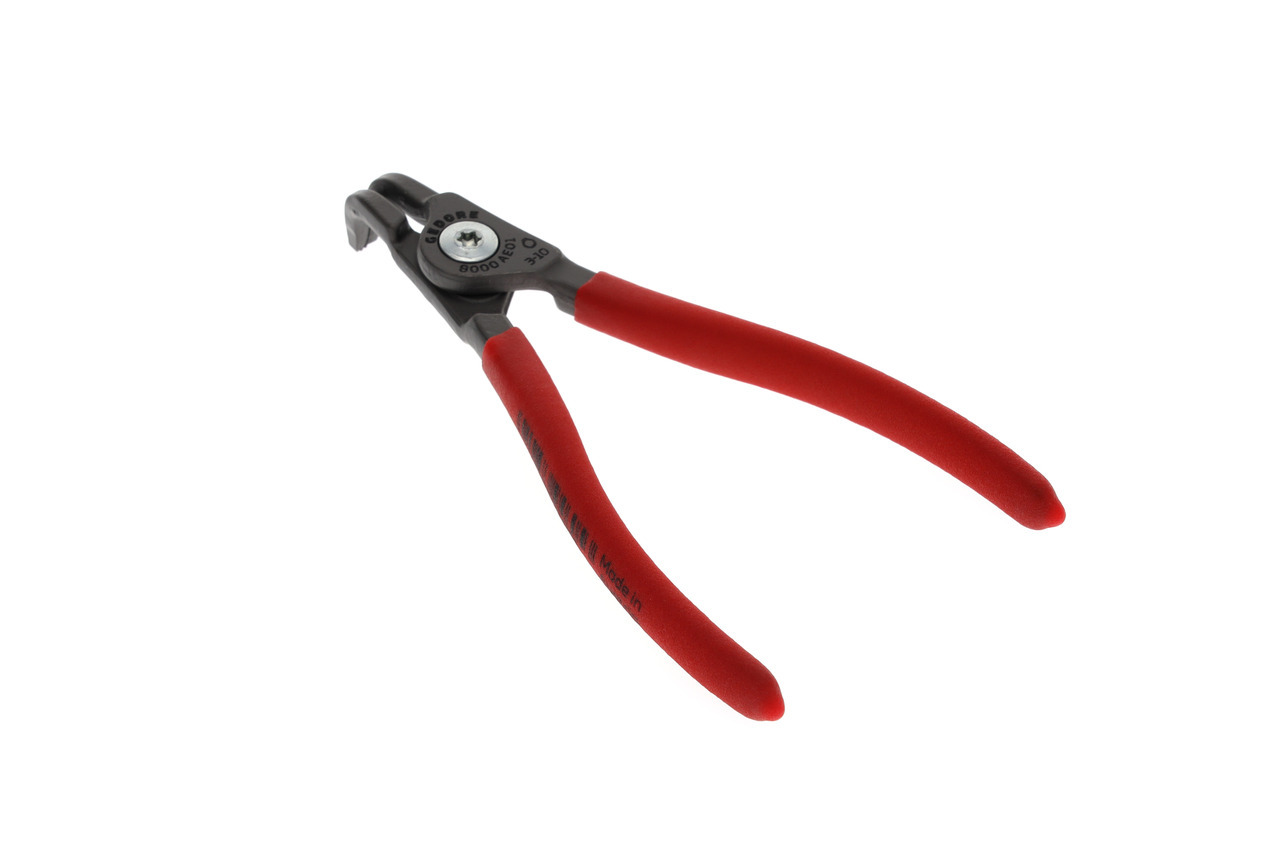 Na krúžky zabezpečujúce podľa DIN 471, DIN 983, Konštrukcia podľa DIN 5254 forma B, Čeľuste pod uhlom 90°, S vnútornou pružinou otvárajúcou, Telo klieští zo špeciálnej ocele chróm-vanádium GEDORE podrobenej tepelnej úprave, Vytláčané koncovky vyrobené z veľmi odolnej proti opotrebeniu ocele ložiskovej, Odolná voči skrúteniu geometria koncovky, Spojenie skrutkou, Oceľovošedá, s protišmykovými rukoväťami ponorenými