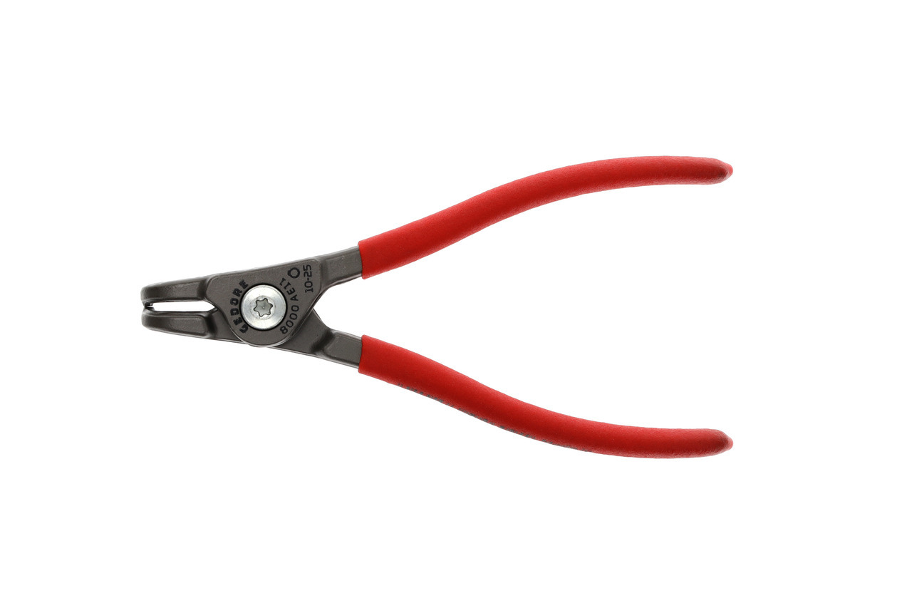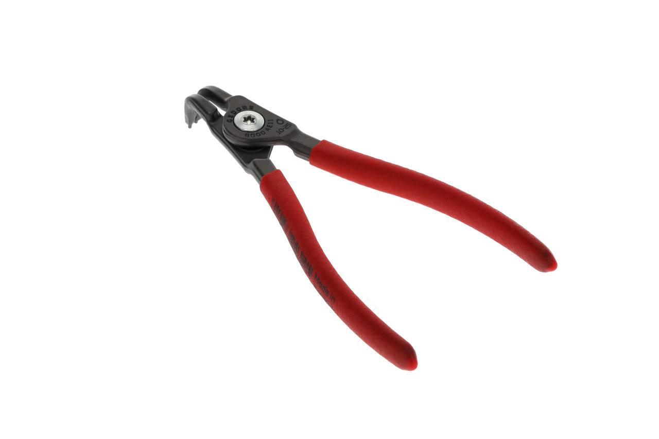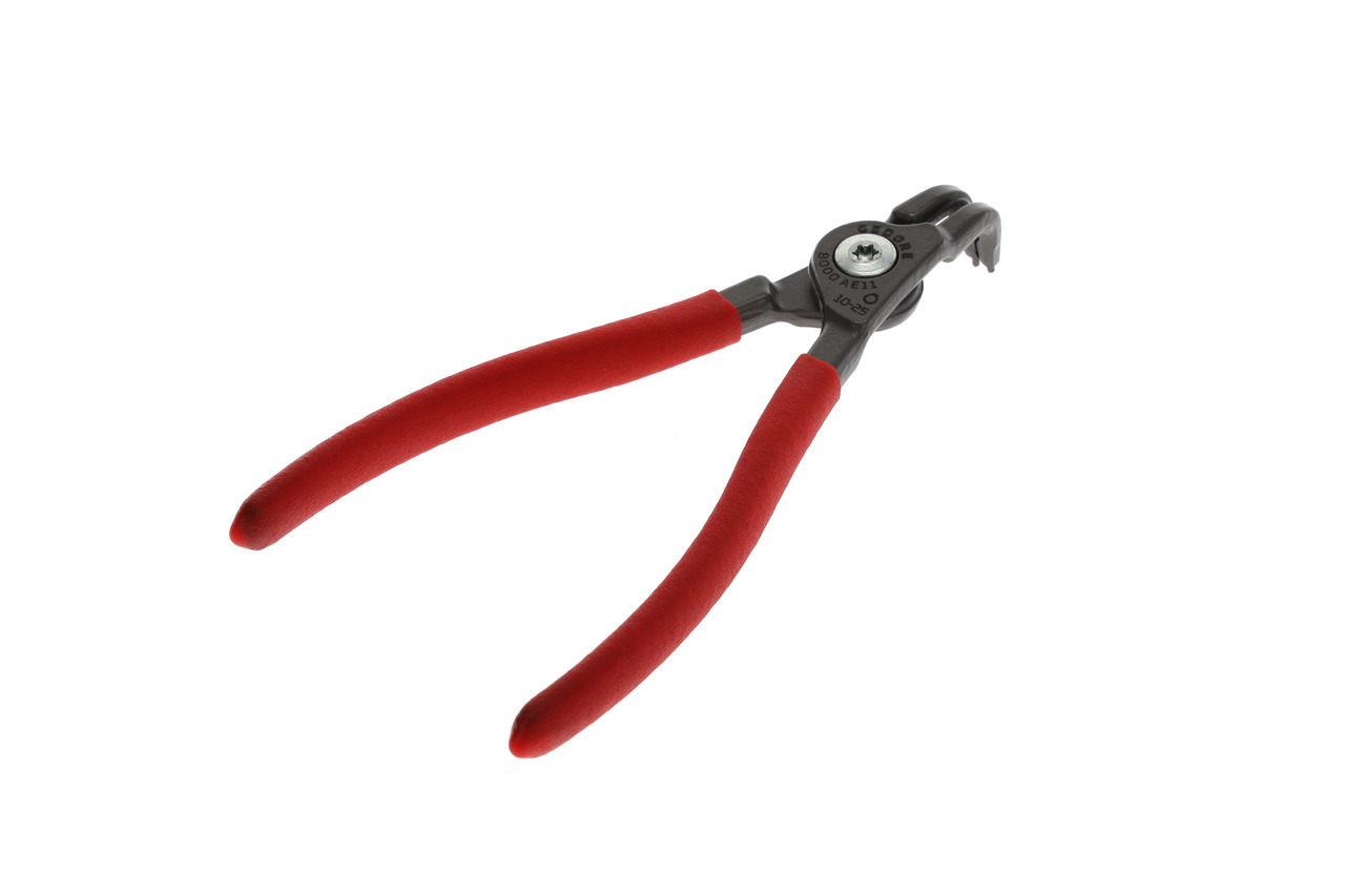 Na krúžky zabezpečujúce podľa DIN 471, DIN 983, Konštrukcia podľa DIN 5254 forma B, Čeľuste pod uhlom 90°, S vnútornou pružinou otvárajúcou, Telo klieští zo špeciálnej ocele chróm-vanádium GEDORE podrobenej tepelnej úprave, Vytláčané koncovky vyrobené z veľmi odolnej proti opotrebeniu ocele ložiskovej, Odolná voči skrúteniu geometria koncovky, Skrutkový spoj, Oceľovošedá, s protišmykovými rukoväťami ponorenými
