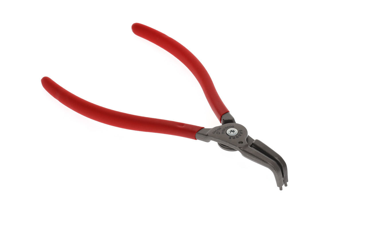 Na krúžky zabezpečujúce podľa DIN 471, DIN 983, Konštrukcia podľa DIN 5254 forma B, Čeľuste pod uhlom 90°, S vnútornou pružinou otvárajúcou, Telo klieští zo špeciálnej ocele chróm-vanád, Vytláčané koncovky vyrobené z veľmi odolnej na opotrebenie ocele ložiskovej, Odolná voči skrúteniu geometria koncovky, Spojenie skrutkou, Oceľovošedá, s protišmykovými rukoväťami ponorenými