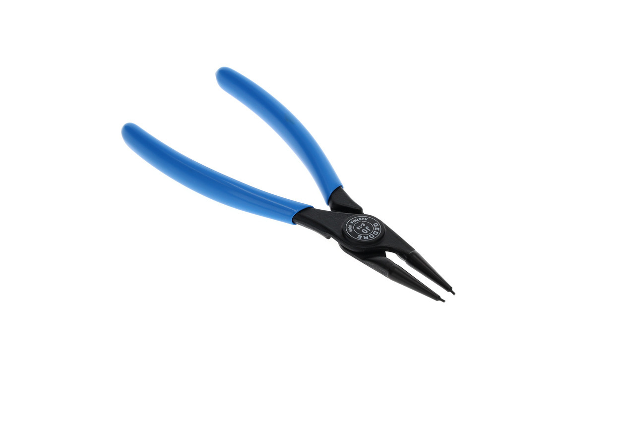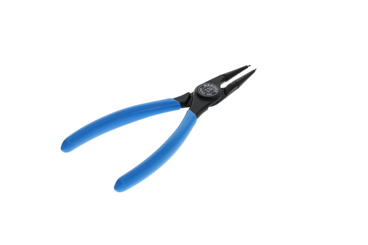Pre prechodné krúžky podľa DIN 472, DIN 984, Konštrukcia podľa DIN 5256 forma C, Hladké čeľuste, Kovaná GEDORE chróm-vanádiová špeciálna oceľ kalená a popúšťaná, Presne opracované, kalené v oleji a popúšťané, Čierne, s modrými, ponorenými rukoväťami