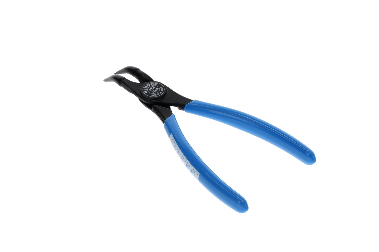 Konstrukcia podobná ako DIN 5256 forma D, Uholné čeľuste 45°, Kovaná GEDORE z chrómovo-vanádiovej špeciálnej ocele, kalená a popúšťaná, Presne opracované, kalené v oleji a popúšťané, Čierne, s modrými, ponorenými rukoväťami