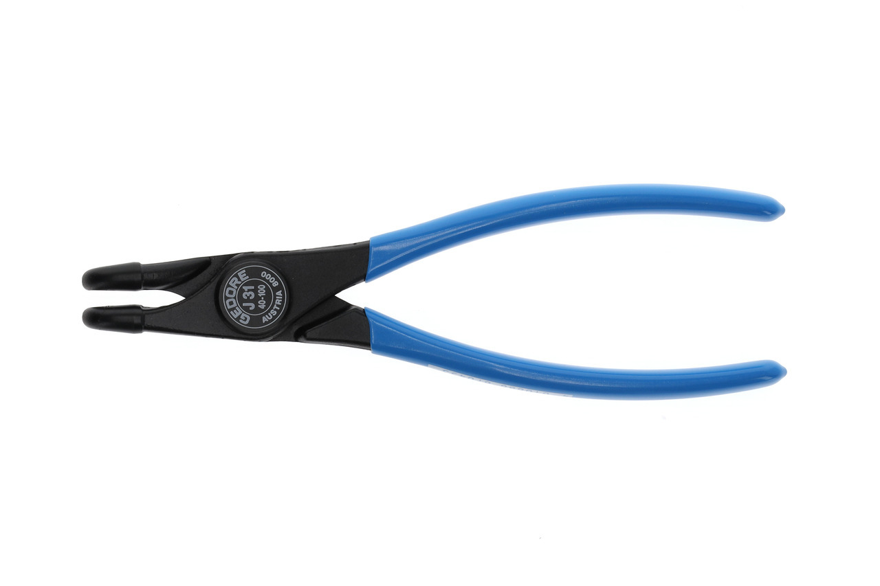 Pre nástroje na zabezpečenie krúžkov podľa DIN 472, DIN 984, Konštrukcia podľa DIN 5256 forma D, Čeľuste pod uhlom 90°, Kovaná GEDORE špeciálna chrómovo-vanádiová oceľ kalená a popúšťaná, Presne opracované, kalené v oleji a popúšťané, Čierne, s modrými, ponorenými rukoväťami