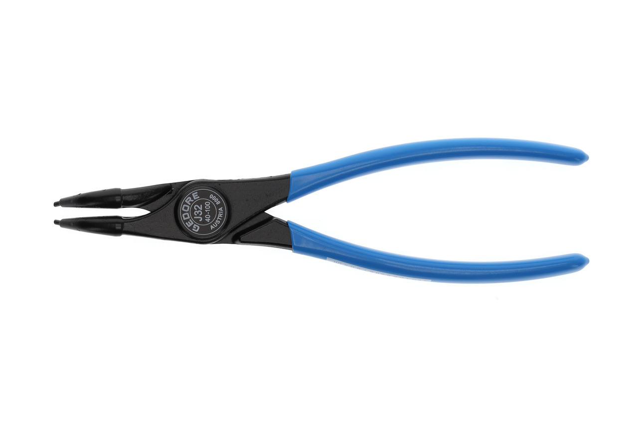 Konstrukcia podobná ako DIN 5256 forma D, Uholné čeľuste 45°, Kovaná GEDORE chrómovo-vanádiová špeciálna oceľ kalená a popúšťaná, Presne opracované, kalené v oleji a popúšťané, Čierna, s modrými, ponorenými rukoväťami