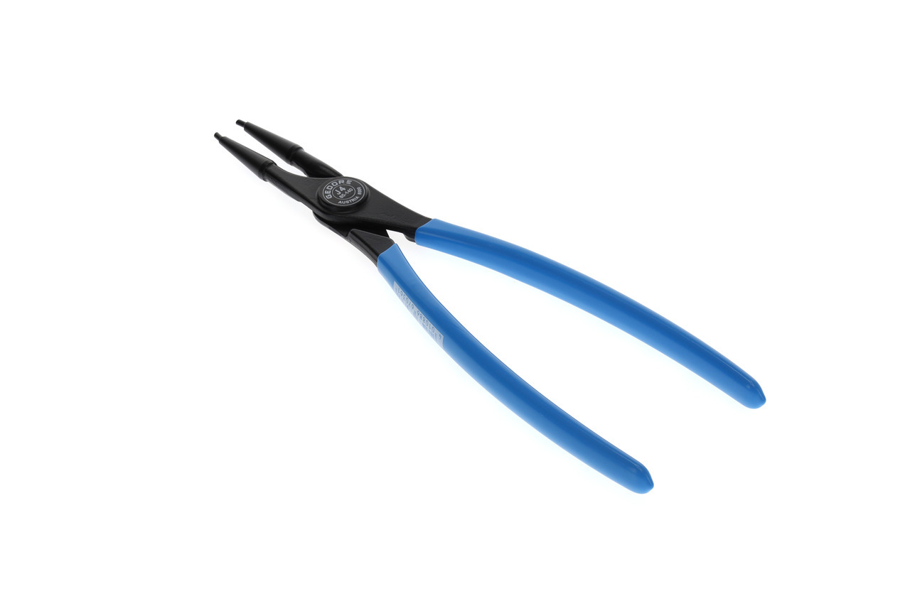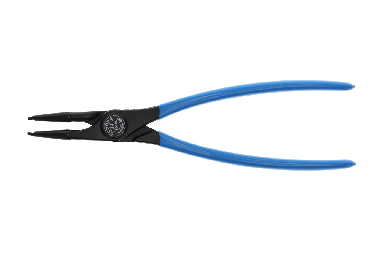 Pre uzamykacie krúžky podľa DIN 472, DIN 984, Konštrukcia podľa DIN 5256 forma C, Hladké čeľuste, Kované GEDORE chrómovo-vanádiová špeciálna oceľ kalená a popúšťaná, Presne opracované, kalené v oleji a popúšťané, Čierne, s modrými, ponorenými rukoväťami
