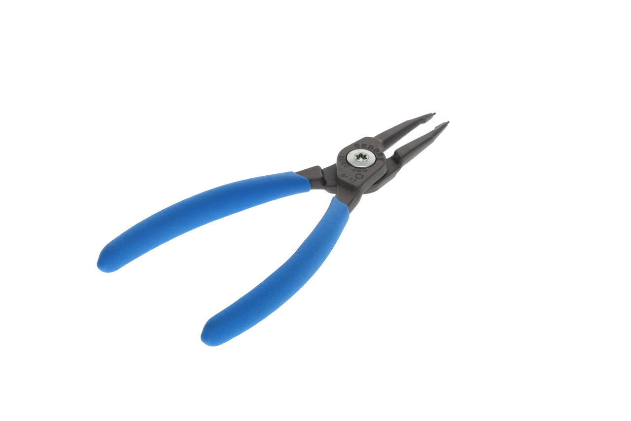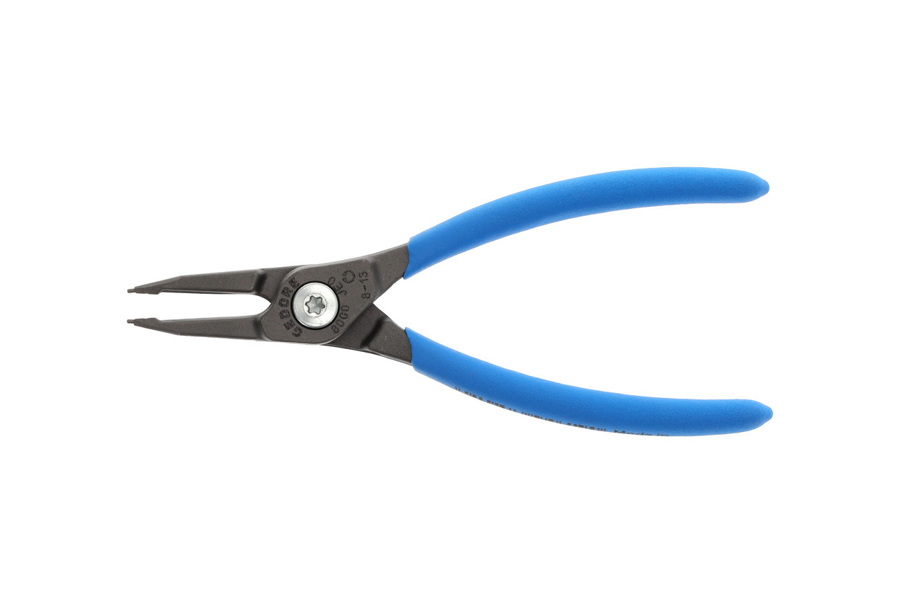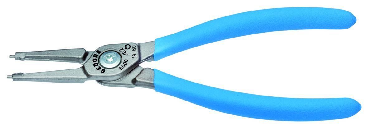 Pre ochranné krúžky podľa DIN 472, DIN 984, Konštrukcia podľa DIN 5256 forma C, Hladké čeľuste, Telo klieští z špeciálnej chrómovo-vanádiovej ocele GEDORE podrobenej tepelnej úprave, Vytláčané koncovky vyrobené z veľmi odolnej proti opotrebeniu ocele ložiskovej, Odolná voči skrúteniu geometria koncovky, Skrutkový spoj, Oceľovošedá, s protišmykovými rukoväťami ponorenými