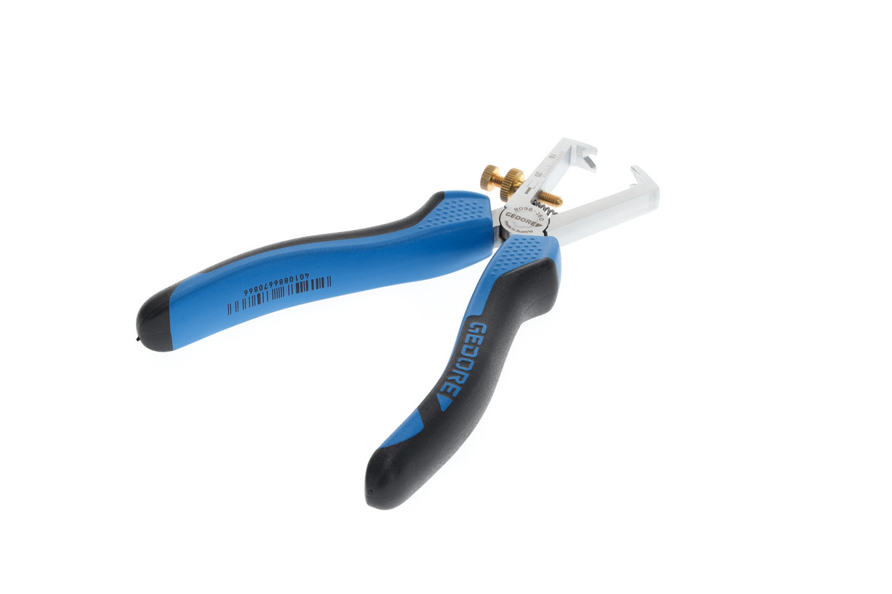 Samostatné otváranie, so pružinou a zaisťovacou skrutkou, V-tvarové rezacie čeľuste na odizolovanie vodičov jednovláknových a viackrátkových s izoláciou z plastu, Jednoduché prispôsobenie požadovanej priemeru drôtu alebo opletu pomocou nastavovacej skrutky a zaisťovacej matice, Pre vodiče od 0,8 do 6,0 mm², Špeciálna oceľ GEDORE na zlepšenie, kovaná, kalená v oleji a popúšťaná, Vyhotovenie JC = chróman, s 2-zložkovým poťahom rukovätí
