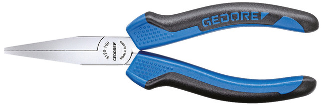 Vykonanie podľa DIN ISO 5745, S dlhými čeľusťami, so zúbkovanými uchopovacími plochami, Na práce súvisiace s údržbou a ohýbaním, Špeciálna oceľ GEDORE na zlepšenie, kovaná v matrice, kalená v oleji a popúšťaná, Vykonanie JC = chróman, s 2-zložkovým poťahom úchopov, Vykonanie TL = bezfarebný náter, s modrými krytmi úchopu natieranými ponorením, Model TC = chróman, s modrými ponornými úchopmi
