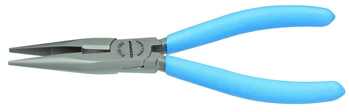 Vyhotovenie podľa DIN ISO 5745, ploché-okrúhle, dlhé čeľuste, rovné uchopovacie plochy, zúbkované, na držanie, uchopenie, ohýbanie a strihanie, indukčne kalené presné ostria, tvrdosť ostrí 61 - 63 HRC, špeciálna oceľ GEDORE na zlepšenie, kovaná v matrice, kalená v oleji a popúšťaná, Vyhotovenie JC = chrómované, s 2-zložkovým poťahom úchopov, Vyhotovenie TL = lakovanie bezfarebným lakom, s modrými krytmi úchopu natieranými ponorením