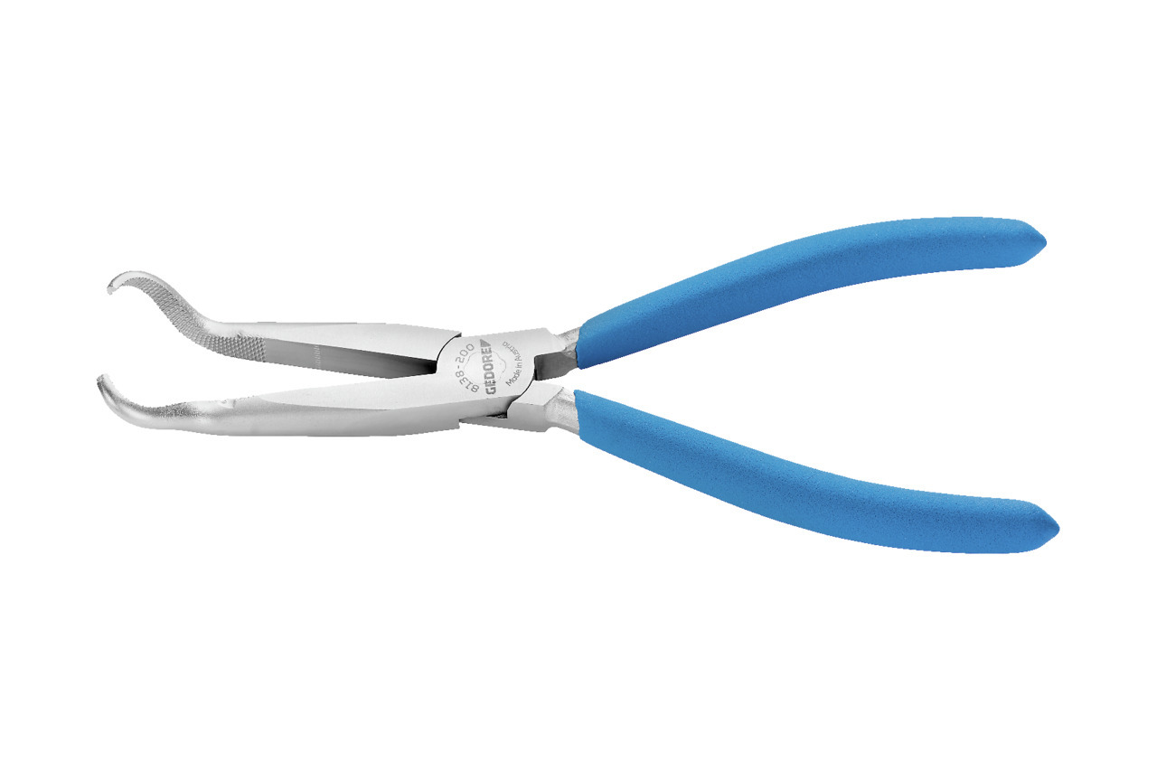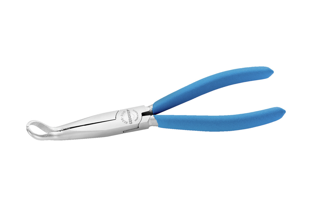 Plosko-okrúhle čeľuste pod uhlom 30°, uchopovacie plochy so zúbkami krížovo s drobnými zúbkami, Optimálna bezpečnosť pri uchopovaní, polohovaní a uvoľňovaní okrúhlych, oválnych a uhlových objektov, Pre zátky sviečok a všetky typy hadíc (napr. chladiacich hadíc), Špeciálna oceľ GEDORE na zlepšenie, kovaná matrične, kalená v oleji a popúšťaná, Vyhotovenie JC = chrómané, s 2-zložkovým poťahom úchopov, Model TC = chrómaný, s modrými ponorenými úchopmi