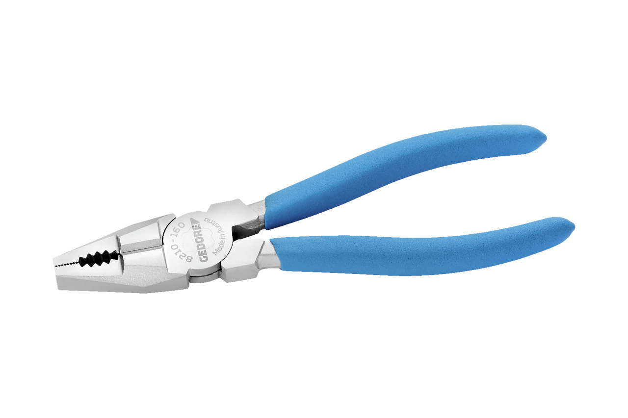 Konstrukcia podľa DIN ISO 5746, Posilnená konštrukcia, na ťažkú prácu s nepretržitým používaním, Namontovaná skrinka na rezanie, Na okrúhle a ploché materiály, Na stredne tvrdý drôt 1,6 mm, Vysokokvalitné, indukčne kalené presné rezné hrany, tvrdosť reznej hrany 62 - 64 HRC, Špeciálna oceľ GEDORE na zlepšenie, kovaná v matrice, kalená v oleji a popúšťaná, Vyhotovenie JC = chrómané, s dvojzložkovým poťahom rukovätí, Vyhotovenie TL = bezfarebné lakovanie, s modrými krytmi rukoväte natieranými ponorením, Model TC = chrómané, s modrými ponorenými rukoväťami