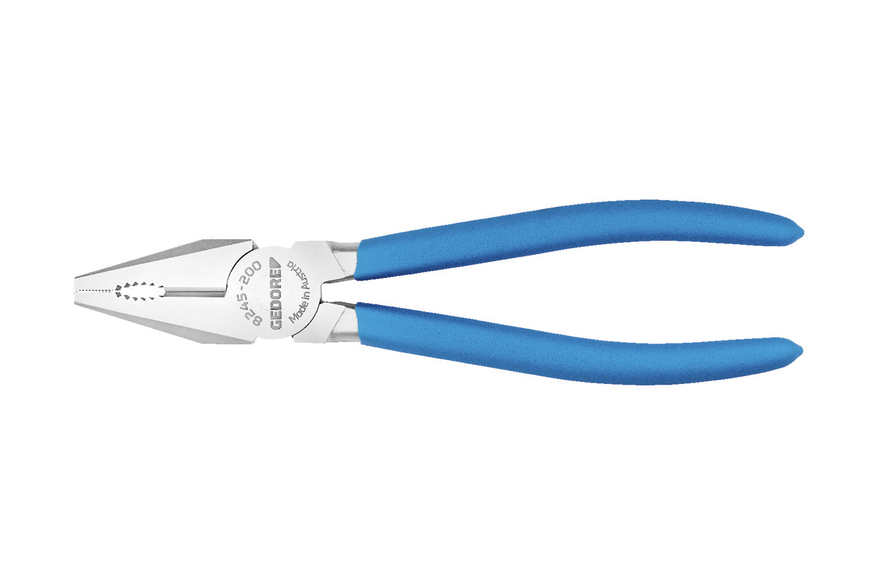 Konstrukcia podľa DIN ISO 5746, univerzálny model s úzkou hlavou, ideálny do úzkych priestorov, indukčne kalené presné čepele, tvrdosť čepelí 62 - 64 HRC, pre okrúhle a ploché materiály, pre stredne tvrdý drôt 1,6 mm, špeciálna oceľ GEDORE na zlepšenie, kovaná v matrice, kalená v oleji a popúšťaná, prevedenie JC = chróman, s dvojzložkovým povrchom rukovätí, prevedenie TL = bezfarebný náter, s modrými krytmi rukoväte natieranými ponorením, model TC = chróman, s modrými ponorenými rukoväťami