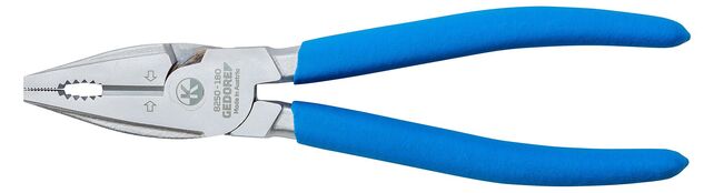 Konstrukcia podľa DIN ISO 5746, Na najťažší kontinuálny stres, Veľká páka pre jednoduchšiu prácu, Presné, indukčne kalené rezné hrany, veľmi dlhé, tvrdosť reznej hrany 62 - 64 HRC, Pre okrúhle a ploché materiály, Pre všetky vodiče, aj pre tvrdé/piano vodiče, 1,6 mm, Špeciálna oceľ GEDORE na zlepšenie, kovaná matrične, kalená v oleji a popúšťaná, Vyhotovenie JC = chrómané, s 2-zložkovým poťahom rukovätí, Vyhotovenie TL = lakovanie bezfarebným lakom, s modrými krytmi rukoväte natieranými ponorením, Kliešte znamenajú 35% menej námahy, Povrch rukoväte s ryhovaním zabezpečuje obzvlášť dobrú priľnavosť, Povrch rukoväte s ryhovaním zabezpečuje obzvlášť dobrú priľnavosť, Hrubo zúbkované uchopovacie plochy pre bezpečné uchopenie skrutiek, rúr a pod.