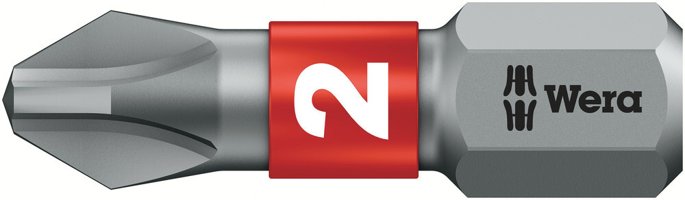 Vyhotovenie:BiTorsion pre dlhú životnosť, húževnaté, univerzálne použitie. Farebné označenie profilu (červená = Phillips) a číselné označenie veľkosti pre jednoduché nájdenie požadovaného bitu.