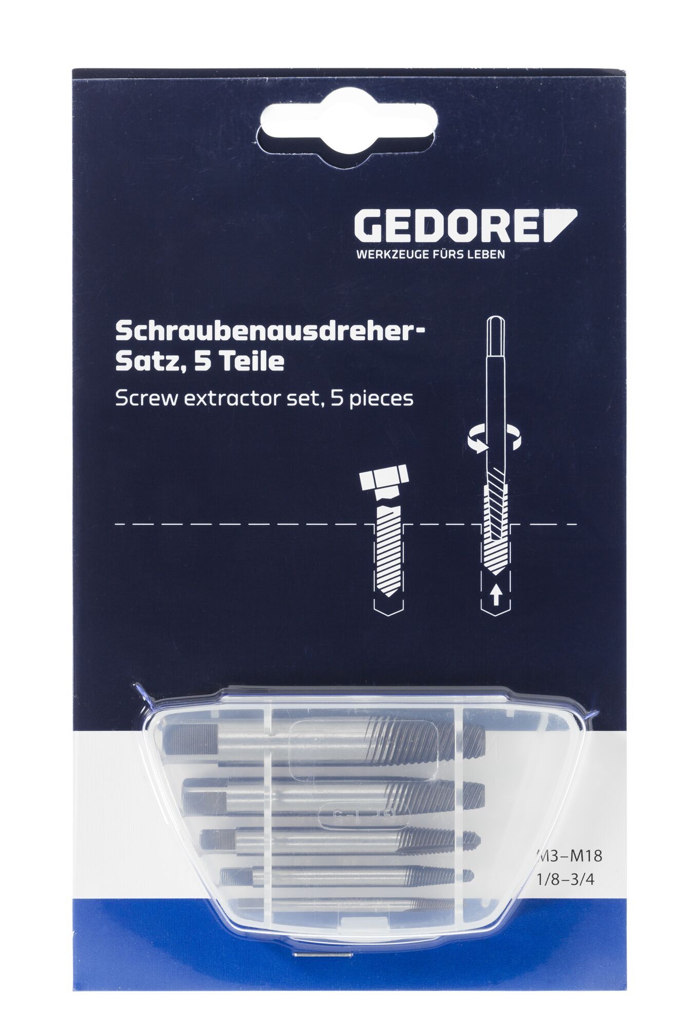 Na vykrúcanie zlomených skrutiek, skrutiek s závitom a koncoviek rúr, Oceľ chróm-vanádiová, 54-56 HRC, kalená a popúšťaná, Znížený krútiaci moment vďaka novej geometrii priečneho rezu, Zmenšená hĺbka vŕtania vďaka optimalizovanej dĺžke závitu, Väčšia bezpečnosť pre používateľa a komponent, Širšie spektrum použitia, úspora času, V plastovej krabičke