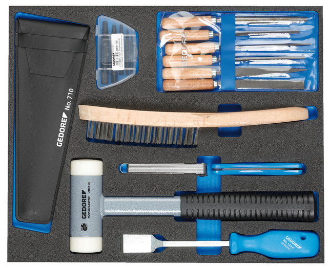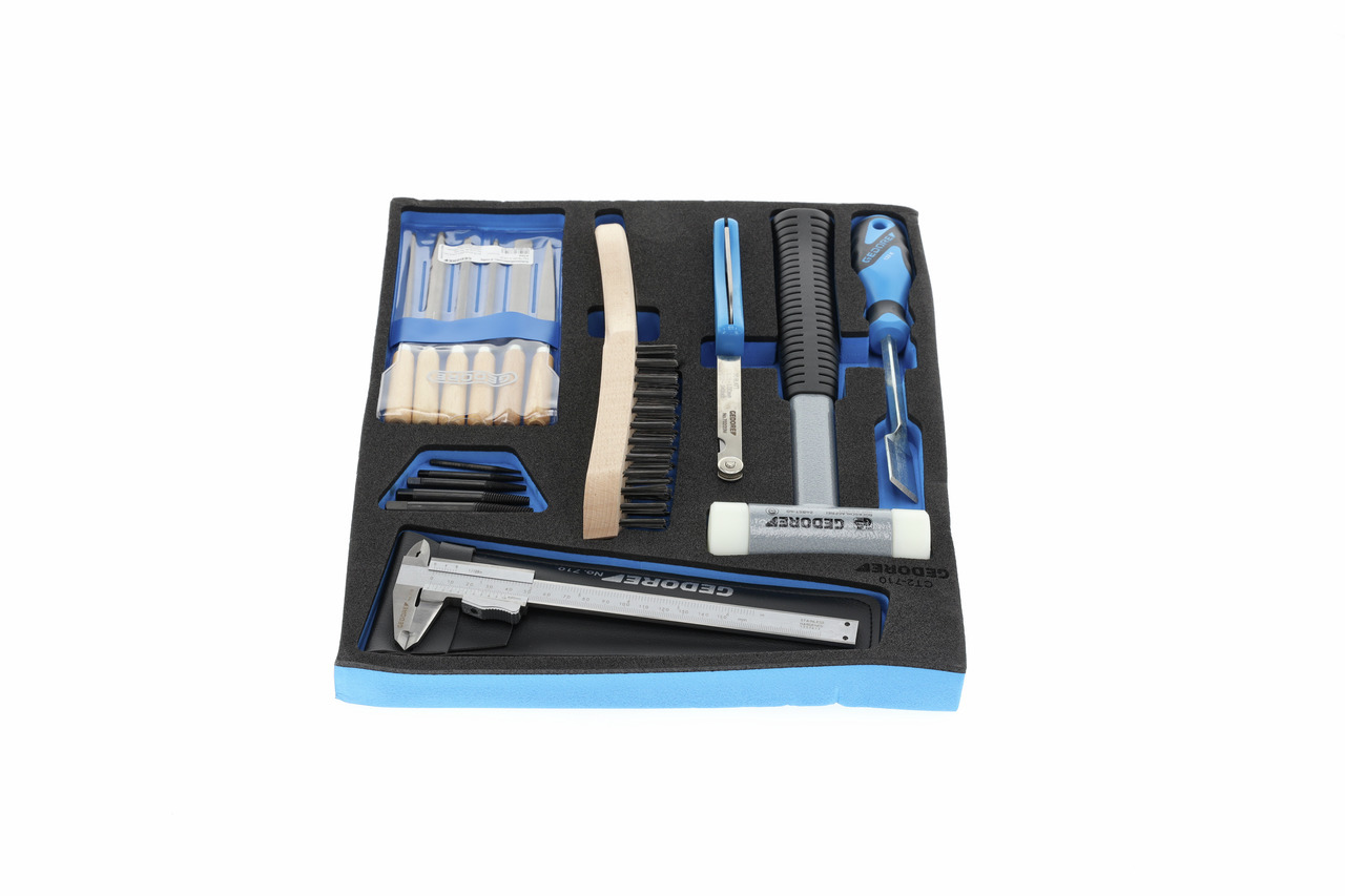 Rozmery: 316,5 x 390 x 35 mm, Jednoduchá optická kontrola úplnosti vďaka dvojfarebným penovým vložkám, Obzvlášť vhodné na prácu v citlivých oblastiach, kde je potrebné dbať na to, aby po sebe nezostávali žiadne nástroje, Základná vrstva modrá, vrchná vrstva čierna. Modrá farba označuje chýbajúce nástroje, Nástroj leží protišmykovo v hniezde a je chránený pred poškodením., Vstavané úchyty uľahčujú demontáž nástroja, Jasne viditeľné kontúry nástroja uľahčujú jeho opätovné vloženie do správneho hniezda, Odolnosť voči olejom a tukom, Odolnosť voči olejom a tukom