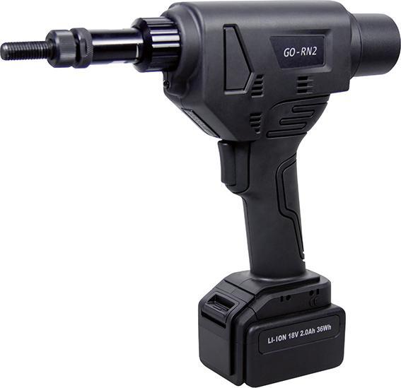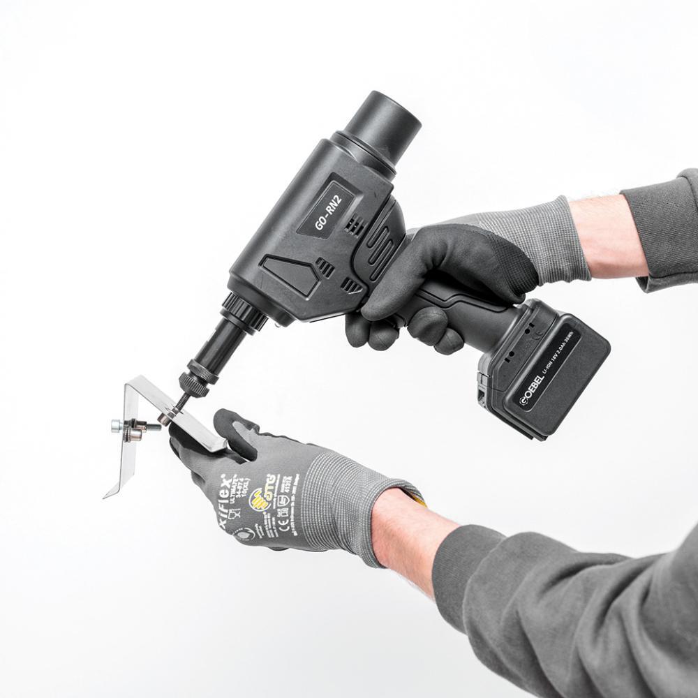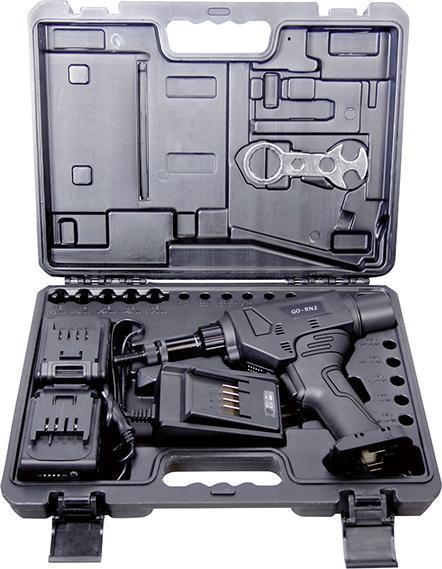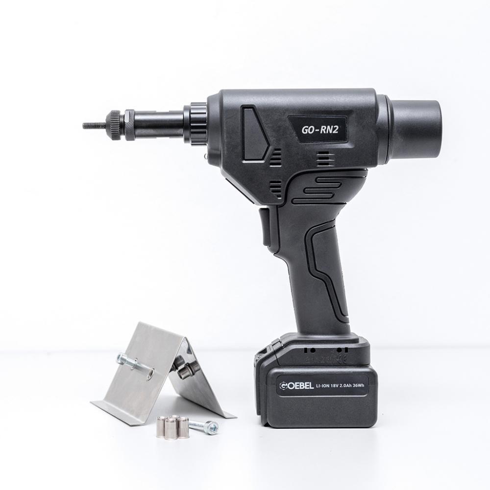 Aku-pistole na nýtovací matice GO-RN2 Provedení: Kompaktný kryt odolný proti nárazom s úchopom Softgrip a bezkartáčovým motorom pre dlhú životnosť a LED pre osvetlenie pracovného priestoru. Vysoká bezpečnosť fungovania vďaka elektronickému ovládaniu. Proces zasadzovania a navŕtavania je funkčne oddelený. Výmena závitových trňov bez použitia náradia a presné nastavenie zdvihu. Ovládanie sleduje nastavený usadzovací zdvih, aby bolo zabezpečené presné použitie. Použitie: Pre nýtovacie matice M8 až M10 akéhokoľvek materiálu a M12 v hliníku a ocele. Obsah dodávky: So 2 li-iontovými rýchlovýmennými akumulátormi 18 V/2,0 Ah, rýchlonabíjačka 18 V, 3 závitové trny M8, M10, M12 a 3 špičky M8, M10, M12, v kufri ABS. Výrobca: Goebel GmbH, Mühlenstr., 40699 Erkrath, DE, +492112450000, info@goebel-group.com