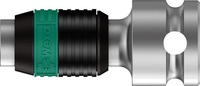 Adaptér na bity 3/8" Zyklop Provedenie: Z chrómovanej vanádiovej ocele. S rýchlovýmenným skľučovadlom pre rýchlu výmenu nástroja. Použitie: Pre všetky 1/4" bity podľa ISO DIN 1173-C 6,3 a E 6,3. Výrobca: Wera Werkzeuge GmbH, Korzerter Str. 21-25, 42349 Wuppertal, DE, +4920240450, sales@wera.de