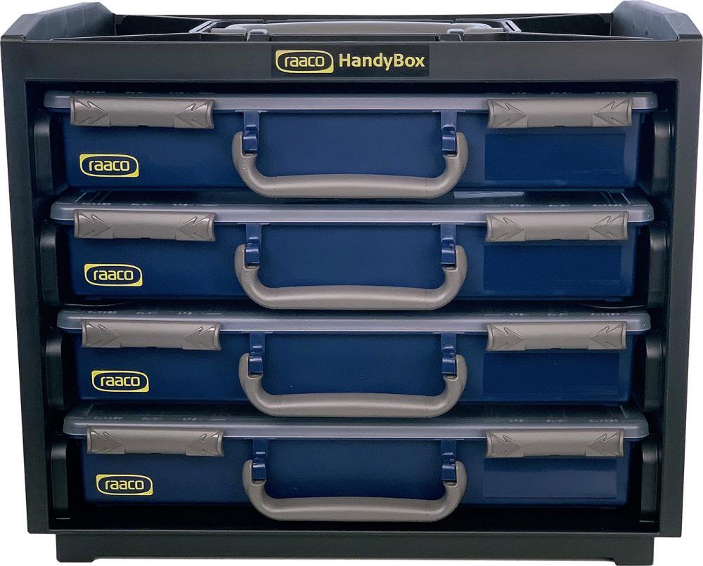 Box na drobné diely Provedenie: Z polypropylénu odolného proti nárazom, kyselinám a lúhom, so sklápacím madlom. Dodané organizéry vďaka bočnému profilu bezpečne zapadnú. Vybavenie: 1 organizér s 15 vyberateľnými vložkami do priehradiek: 55 x 39 x 47 mm (5 ks) 109 x 39 x 47 mm (2 ks) 163 x 39 x 47 mm (1 ks) 218 x 39 x 47 mm (1 ks) 79 x 55 x 47 mm (4 ks) 157 x 55 x 47 mm (1 ks) 109 x 79 x 47 mm (1 ks) 1 organizér s 17 vyberateľnými vložkami do priehradiek: 55 x 39 x 47 mm (4 ks) 109 x 39 x 47 mm (4 ks) 79 x 55 x 47 mm (8 ks) 109 x 79 x 47 mm (1 ks) Výrobca: Raaco Germany Handels GmbH, Admiralstrasse 21, 28215 Bremen, DE, +49421595950, demail@raaco.com