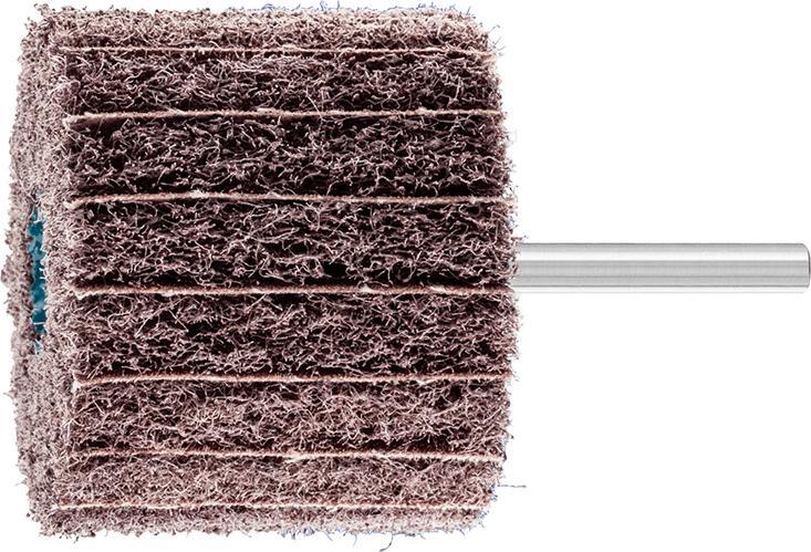 Stopkové brúsne teliesko POLINOX® PNZ Vyhotovenie: Polyamidová plsť s korundovým posypom (A), rovnomerne preložená brúsnymi lamelami. Brúsne plsťové lamely sú radiálne usporiadané. Chladné brúsenie a žiadne zanášanie vďaka otvorenej štruktúre tkaniny. Upínacia stopka 6 mm. Použitie: Ideálne na obrábanie ploch. Na zdrsňovanie, jemné brúsenie, matovanie, matovanie hladením, satinovanie a čistenie a tiež na jemné odjehlovanie. 60 x 50 mm. Dop. 5000 min-1, max. 10000 min-1. Výrobca: August Rüggeberg GmbH & Co. KG, Hauptstr. 13, 51709 Marienheide, DE, +49226490, pferd@rueggeberg.com