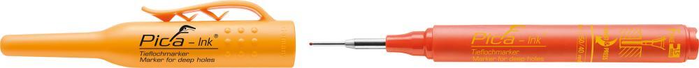 Hloubkový značkovač Pica-Ink® Provedení: Samonastavovací teleskopický hrot z nerezu, až trojnásobný výkon zápisu díky kompletnímu využití 7mm dlouhého vláknitého hrotu. Hrot lze v případě opotřebení několikrát otočit o 180°, a prodloužit tak jeho životnost. Praktické ochranné pouzdro se speciálním klipem k ovládání jednou rukou. Permanentní inkoust odstranitelný z hladkých povrchů alkoholem/lihem. Použití: Pro značení na těžko přístupných místech, píše na všechny suché povrchy. Výrobce: Pica-Marker GmbH, Picastraße 5, 91356 Kirchehrenbach, DE, +4991913204030, info@pica-marker.com