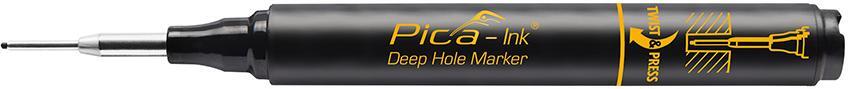 Hloubkový značkovač Pica-Ink® Provedení: Samonastavovací teleskopický hrot z nerezu, až trojnásobný výkon zápisu díky kompletnímu využití 7mm dlouhého vláknitého hrotu. Hrot lze v případě opotřebení několikrát otočit o 180°, a prodloužit tak jeho životnost. Praktické ochranné pouzdro se speciálním klipem k ovládání jednou rukou. Permanentní inkoust odstranitelný z hladkých povrchů alkoholem/lihem. Použití: Pro značení na těžko přístupných místech, píše na všechny suché povrchy. Výrobce: Pica-Marker GmbH, Picastraße 5, 91356 Kirchehrenbach, DE, +4991913204030, info@pica-marker.com