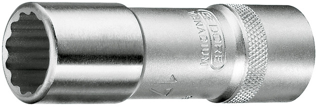 Hlava šesťhranného kľúča DIN 3120 - C 12,5, ISO 1174, s drážkou pre guľový zaisťovač, Ručne ovládaná, s protišmykovým priečnym ryhovaním, Oceľ chróm-vanádová, brúsená, chrómaná