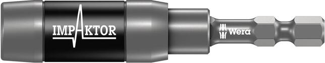 Univerzálny držiak bitov 1/4" Impaktor, s prstencovým magnetom Vyhotovenie: DIN 3216 E 6,3. Prostredníctvom dvoch spojených, postupne pôsobiacich torzných pásov bude predovšetkým extrémne špičkové zaťaženie, ktoré sa vyskytuje napríklad pri spracovaní impaktným/nárazovým skrutkovačom bezpečne odpružené a zvýši životnosť bitov. Použitie: Obzvlášť vhodné na použitie s impaktnými / rázovými skrutkovačmi. Na spojenie bitov s príslušnými ovládacími nástrojmi. V spojení s nárazovými bitmi až 10-násobne dlhšia životnosť výrobku v porovnaní so štandardnými systémami alebo systémami torzných držiakov bitov. So silným prstencovým magnetom a poistným krúžkom. Magnet sa môže posunúť dozadu, čím sa odpojí. Výrobca: Wera Werkzeuge GmbH, Korzerter Str. 21-25, 42349 Wuppertal, DE, +4920240450, sales@wera.de