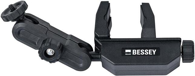 Multifunkčný držiak a držiak laseru pre stropnú a montážnu podporu Použitie: Rýchla montáž bez náradia. Multifunkčný držiak a držiak laseru, so závitovým úchytem 1/4“ Otočný držiak v tvare L je možné použiť na guľatých (0-45 mm) aj hranatých (0-55 mm) nosných dieloch. 2 osi otáčania (360° vedľa upevňovacej svorky, 180° na závitovom úchyte). Výrobca: BESSEY Tool GmbH & Co. KG, Mühlwiesenstr. 40, 74321 Bietigheim-Bissingen, DE, +4971424010, tool-info@bessey.de
