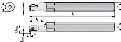 Vyvrtávacia tyč pre vnútorné zapichovanie, s vnútorným chladením Prevedenie: Prizmatické upínanie zaručuje vysokú presnosť polohovania. Optimalizované uloženie destičiek pôsobí proti vysokým axiálnym silám z oboch smerov. Dodáva sa bez vymeniteľných břitových destičiek, bez skrutkovača. Použitie: Zapichovacie a upichovacie sústruženie, sústruženie drážok, tvarové a voľné zapichovanie. Výrobca: Einkaufsbüro Deutscher Eisenhändler GmbH, EDE Platz 1, 42389 Wuppertal, DE, +4920260960, webkontakt@ede.de