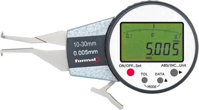 Digitálny vnútorný rýchlosnímač Provedenie: Vždy jedno pevné a jedno pohyblivé rameno snímača, s meracími guľkami z tvrdokovu. Ľahko čitateľný LCD displej s otočením o 170°. Funkcia: Absolútne a relatívne meranie, prepínanie mm/palce, meranie v toleranciách, prepínanie rozlíšenia merania. Použitie: Na rýchle meranie otvorov, vnútorných drážok atď. Výrobca: Einkaufsbüro Deutscher Eisenhändler GmbH, EDE Platz 1, 42389 Wuppertal, DE, +4920260960, webkontakt@ede.de