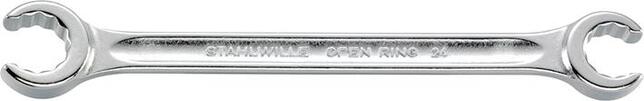 Ráčnový kľúč obojstranný očkový, otvorený Prevedenie: DIN 3118. Z ocele legovanej chrómom, pochromované, hlava s očkami zalomená v uhle 15°. Výrobca: STAHLWILLE Eduard Wille GmbH & Co. KG, Lindenallee 27, 42349 Wuppertal, DE, +4920247910, info@stahlwille.de