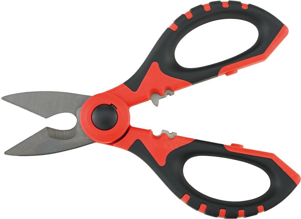Elektrikárske nožnice Provedenie: tvrdené ostrie s mikroozubením z nerezovej ocele (56 HRC), s titanovou vrstvou. So zárezom v dolnom ostrí pre prichytenie a jednoduché strihanie káblov. Rukoväte so dvoma dlhými rukoväťovými okami a kompozitné plastové návleky. Výrobca: Einkaufsbüro Deutscher Eisenhändler GmbH, EDE Platz 1, 42389 Wuppertal, DE, +4920260960, webkontakt@ede.de
