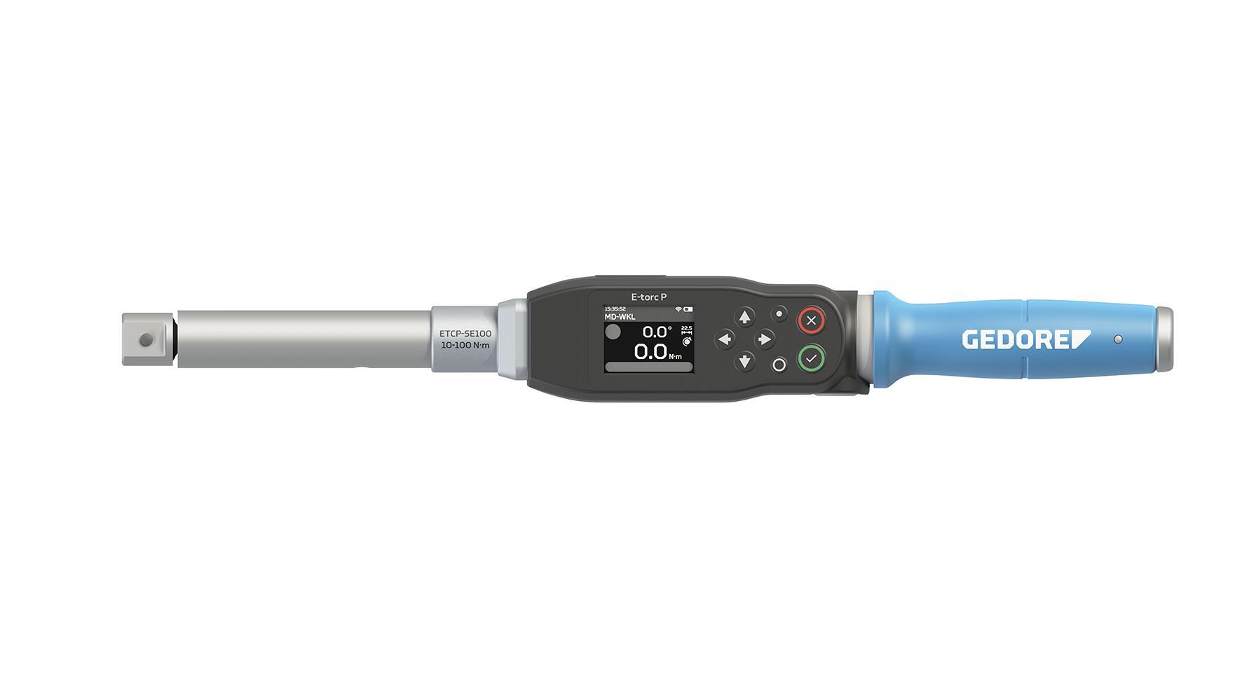 Elektronický momentový a uhlový kľúč na použitie v produkcii/montáži umožňuje správny a bezpečný/kontrolovaný proces (montáže) skrutkových spojení a sledovanie/dokumentovanie skrutkovania, ktoré vyžaduje dokumentáciu. Kontrolované dotiahnutie skrutiek v rozsahu od 10 do 100 N·m. Vďaka najvyššej presnosti - presnosť merania +/- 1% (moment a uhol) - sú splnené aj najvyššie priemyselné požiadavky. Okrem momentu/uhla sú k dispozícii aj indikátor sklzu (Track), meranie špičky (Peak) a možnosť vyvolávania presetov a pracovných plánov. V veľkej vnútornej pamäti je možné uložiť až 9 999 meracích údajov a kriviek. Údaje je možné bezdrôtovo prenášať cez WLAN, Zigbee (voliteľne) alebo pomocou USB kábla. Dvojcestná komunikácia umožňuje bezdrôtové prenášanie pracovných plánov do kľúča a prenášanie meracích údajov. Pracovné plány je možné spúšťať pomocou menu alebo integrovaného 2D skenera. Štandardne môže byť E-Torc P pripojený k existujúcim systémom riadenia výroby (MES) pomocou otvoreného protokolu. Stabilný pri zmene uhla pohľadu a kontrastný displej IPS 2" zabezpečuje vynikajúcu čitateľnosť aj v jasných pracovných prostrediach. Vďaka viditeľnému z každého uhla 360° kruhovému LED, je proces montáže kontrolovaný aj v náročných podmienkach (napr. práce nad hlavou). Signalizácia prebieha vizuálne (displej, LED prstenec), dotykovo (vibrácia) a akusticky (zvukový signál). Ľahká a praktická konštrukcia a bočné tlačidlo potvrdenia umožňujú ergonomickú a beznámahovú prácu. Výkonná lítium-iónová batéria zabezpečuje dlhý čas prevádzky a životnosť (bez pamäťového efektu). Indukčná nabíjacia stanica (voliteľne) umožňuje bezdrôtové nabíjanie a zabezpečuje bezpečné uloženie ako v horizontálnej, tak aj zavesenej na stene. Z výroby s kalibračným certifikátom v súlade s internou normou GEDORE GTTWN001, odvolávajúcim sa na národné normy. Kalibrácia uhla na základe VDI/VDE 2648-2, kalibrácia podľa DKD-R 3-7 Trieda 1, vrátane kalibračného certifikátu so symbolom akreditácie (voliteľne). Možnosť programovania rôznych rozmerov vložiek náradia. Bezpečný, bezplatný softvér na analýzu PC je súčasťou balenia.