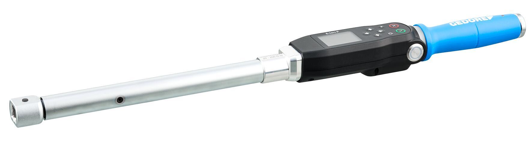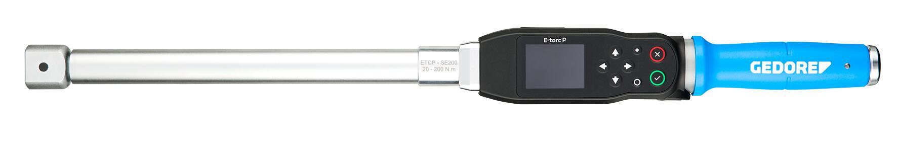 Elektronický momentový a uhlový kľúč na použitie v produkcii/montáži umožňuje správny a bezpečný/kontrolovaný proces (montáže) skrutkových spojení a sledovanie/dokumentovanie skrutkovania, ktoré vyžaduje dokumentáciu. Kontrolované dotiahnutie skrutiek v rozsahu od 20 do 200 N·m. Vďaka najvyššej presnosti - presnosť merania +/- 1% (moment a uhol) - sú splnené aj najvyššie priemyselné požiadavky. Okrem momentu/uhla sú k dispozícii aj indikátor sklzu (Track), meranie špičky (Peak) a možnosť vyvolávania presetov a pracovných plánov. V veľkej vnútornej pamäti je možné uložiť až 9 999 meracích údajov a kriviek. Údaje je možné bezdrôtovo prenášať cez WLAN, Zigbee (voliteľne) alebo pomocou kábla USB. Dvojcestná komunikácia umožňuje bezdrôtové prenášanie pracovných plánov do kľúča a prenášanie meracích údajov. Pracovné plány je možné spúšťať pomocou menu alebo integrovaného 2D skenera. Štandardne môže byť E-Torc P pripojený k existujúcim systémom riadenia výroby (MES) pomocou otvoreného protokolu. Stabilný pri zmene uhla pohľadu a kontrastný displej IPS 2" zabezpečuje vynikajúcu čitateľnosť aj v jasných pracovných prostrediach. Vďaka viditeľnému z každého uhla 360° kruhovému LED, je proces montáže kontrolovaný aj v náročných podmienkach (napr. práce nad hlavou). Signalizácia prebieha vizuálne (displej, LED prstenec), dotykovo (vibrácie) a akusticky (zvukový signál). Ľahká a praktická konštrukcia a bočné tlačidlo potvrdenia umožňujú ergonomickú a beznámahovú prácu. Výkonná lítium-iónová batéria zabezpečuje dlhý čas prevádzky a životnosť (bez pamäťového efektu). Indukčná nabíjacia stanica (voliteľne) umožňuje bezdrôtové nabíjanie a zabezpečuje bezpečné uloženie ako v horizontálnej, tak aj zavesenej na stene. Z výroby s kalibračným certifikátom v súlade s internou normou GEDORE GTTWN001, odvolávajúcim sa na národné normy. Kalibrácia uhla na základe VDI/VDE 2648-2, kalibrácia podľa DKD-R 3-7 Trieda 1, vrátane kalibračného certifikátu so symbolom akreditácie (voliteľne). Možnosť programovania rôznych rozmerov vložiek nástrojov. Bezpečný, bezplatný softvér na analýzu PC je súčasťou balenia.