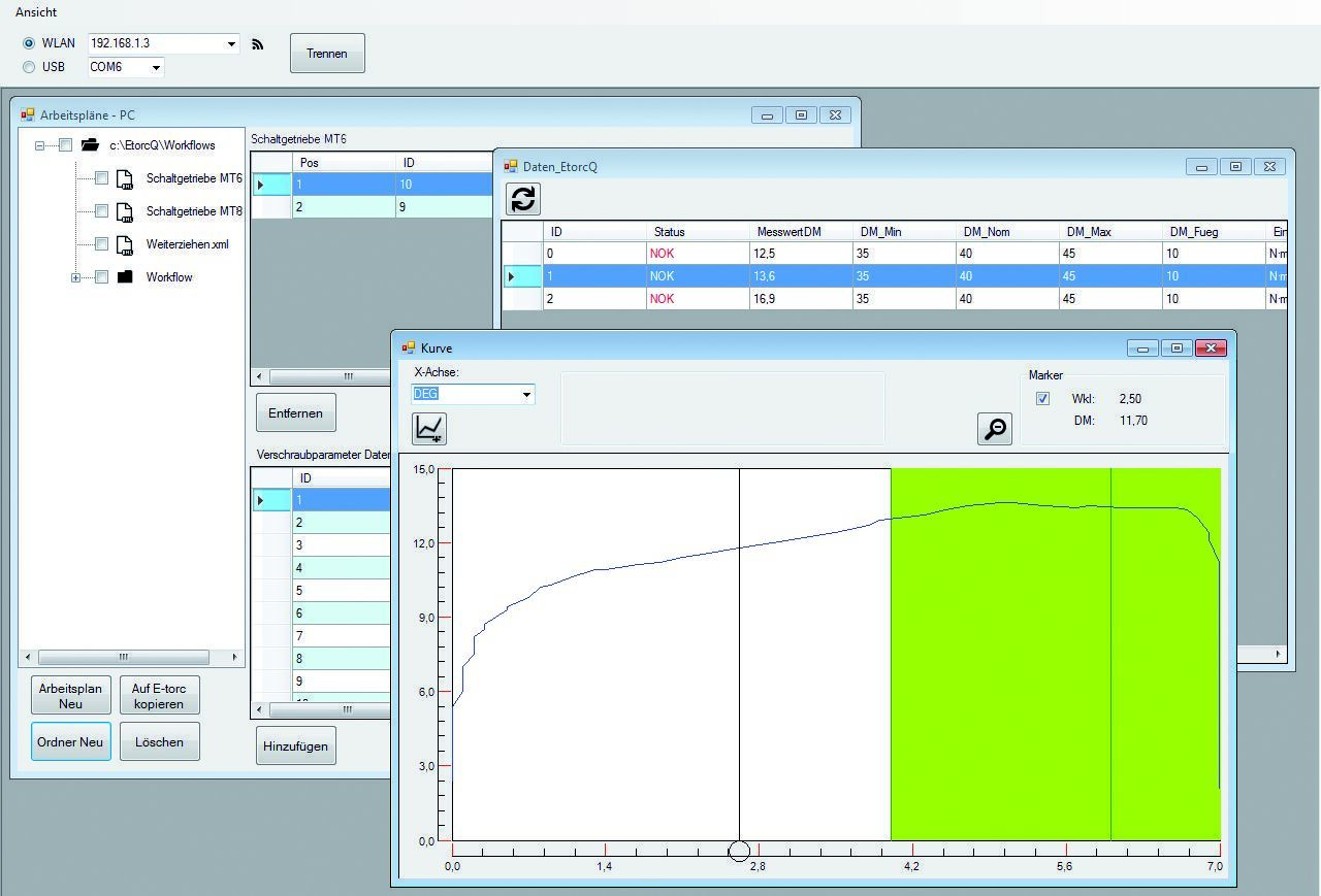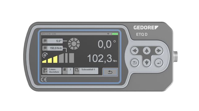 Vlastnosti: Kompaktný displej hodnotenia pre meracie hlavy E-torc QR, Veľký grafický TFT displej, uhlopriečka 109 mm (4,3"), s dotykovou funkciou, ktorá umožňuje obsluhu v rukaviciach, Intuitívne ovládanie pomocou dotykového displeja alebo šiestich hardvérových tlačidiel, So zabudovanou vysokokapacitnou lítium-iónovou batériou, Na mobilné alebo stacionárne použitie (voliteľne dostupný držiak na opasok: 3078582 alebo stojan: 3033694), Pevný a ľahký hliníkový kryt, Všetky bežne používané metódy merania: Krútiaci moment, krútiaci moment/uhol otáčania, uvoľňovanie/utahovanie, ďalšie dotiahnutie, medza plasticity, Spolu s výkonným softvérom na hodnotenie a obsluhu počítača (Windows 7 alebo vyšší), Užívateľské rozhrania: Rádio (WiFi 2,4 a 5 GHz), Mini USB rozhranie, konektor pre pripojovací kábel ETQR (kompatibilný so senzormi E-torc QR), Pripojenie k systémom CAQ (voliteľne), Presnosť: /- 1 %, /- 1 číslica, Rozsah dodávky: Displej hodnotenia ETQR, Softvér na hodnotenie a obsluhu počítača (s Windows 7), USB kábel, napájací adaptér
