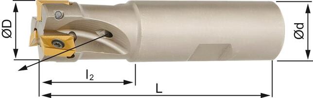 Stopková fréza s vnútorným chladením, 90°, valcová Vykonanie: Stopková fréza valcová 90°, držiak nástrojov poniklovaný. Dodáva sa bez vymeniteľných břitových dosiek, bez skrutkovača. Použitie: Pre frézovanie rohov a drážok, kopírovanie dovnútra, cirkulárne a obvodové frézovanie a vrtacie cirkulárne frézovanie, univerzálne použitie. Výrobca: Einkaufsbüro Deutscher Eisenhändler GmbH, EDE Platz 1, 42389 Wuppertal, DE, +4920260960, webkontakt@ede.de