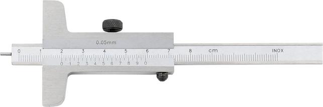 Posuvný hĺbkomer s meracím kolíkom Prevedenie: Z nerezovej ocele, kalené, stupnica a nonius matne chrómované a obojstranne vysoko presne laserovo označené, s tvrdeným meracím kolíkom a aretačným skrutkou. Dodávame v drevenej krabici. Výrobca: Einkaufsbüro Deutscher Eisenhändler GmbH, EDE Platz 1, 42389 Wuppertal, DE, +4920260960, webkontakt@ede.de