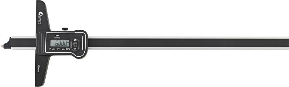 Sada digitálneho posuvného hĺbkomera, ľahký kov Vyhotovenie: Z hliníka potiahnutého oxidom, puzdro vyfrézované z jedného kusu, vymeniteľné meracie mostíky tvrdo eloxované, aretačný skrutka, výška číslic na LCD displeji 7,5 mm. Optimálne vodivé a klzné vlastnosti vďaka dvojitému prizmatickému vedeniu. So štandardným a guľôčkovým snímačom 5 mm. Dodanie s batériou LR44. Funkcia: Automatické zapnutie, prepínanie mm/palce, reset (vynulovanie) je možné aktivovať v každej pozícii. Výrobca: Einkaufsbüro Deutscher Eisenhändler GmbH, EDE Platz 1, 42389 Wuppertal, DE, +4920260960, webkontakt@ede.de