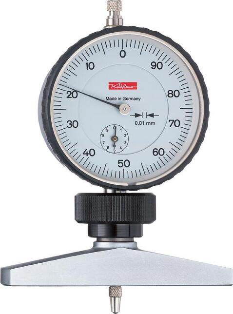 Hĺbkomer Vyhotovenie: Merací mostík matne pochromovaný a tvrdený. Dosedacia plocha leštená na najjemnejší stupeň. Kovová objímka zaručuje bezpečné upnutie úchylkomera a tým aj vyššiu bezpečnosť počas merania. Prídavný skrutka s šesťhranom uľahčuje výmenu úchylkomera. Merací nástavec s vonkajším závitom M2,5. Milimetrová stupnica v meracom rozsahu 30 mm (TM 2/30) je umiestnená sústredne, čo umožňuje jednoduché a bezpečné odčítanie. Dodávame so špeciálnym meracím nástavcom o dĺžke 10 mm a meracím mostíkom s rozmermi 80 x 16 mm. Výrobca: Käfer Meßuhrenfabrik GmbH & Co. KG, Hahnstr. 11, 78054 Villingen-Schwenningen, DE, +49772083410, info@kaefer-messuhren.de