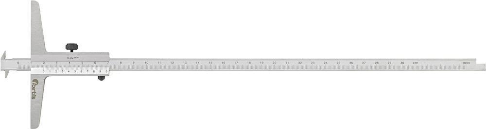 Posuvný hĺbkomer so zníženou obojstrannou mierkou, rozlíšenie 0,02 mm Vyhotovenie: Z nerezovej ocele, kalené, stupnica a nonius matne chrómované a obojstranne vysoko presne laserovo označené, s obojstranne zníženou meracou lištou na prestavenie a aretačným skrutkou. Výrobca: Einkaufsbüro Deutscher Eisenhändler GmbH, EDE Platz 1, 42389 Wuppertal, DE, +4920260960, webkontakt@ede.de
