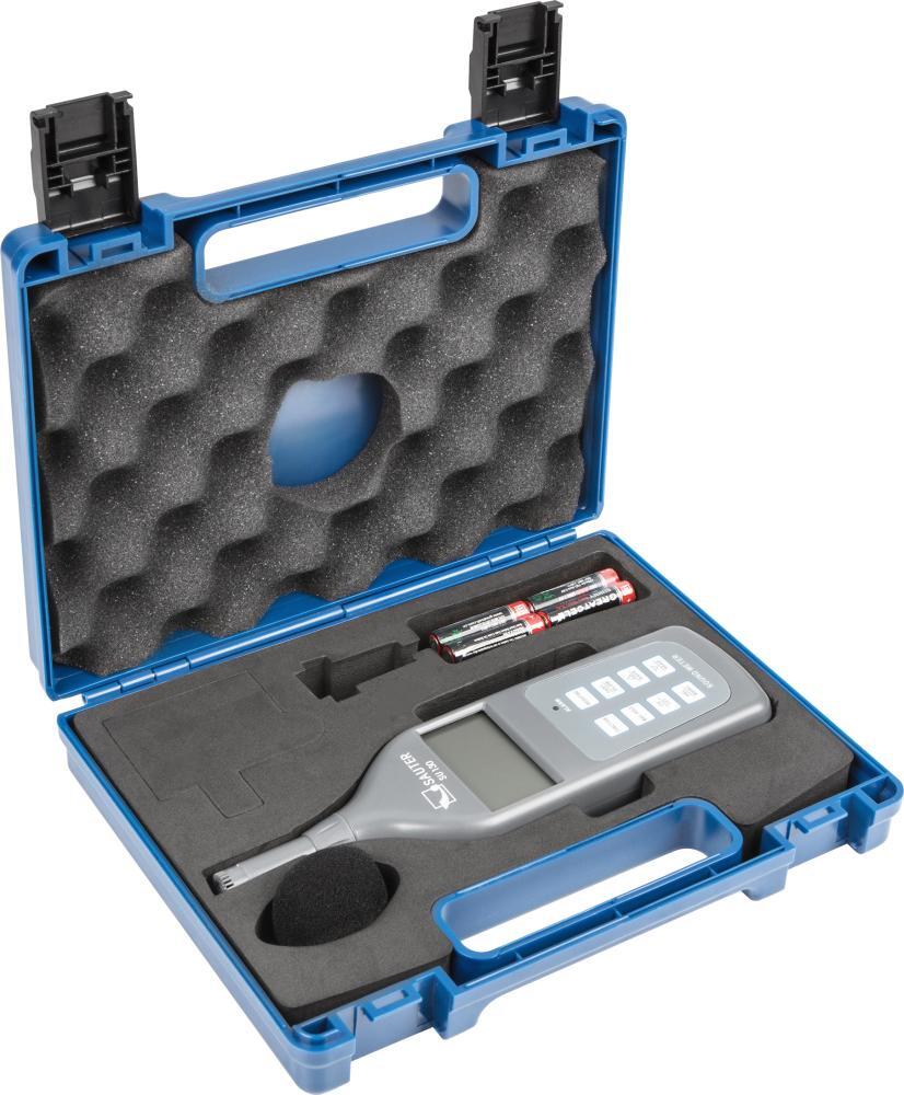 Hlukomer Provedenie: Multifunkčné meranie: štandardná funkcia merania hladiny akustického hluku, režim energeticky ekvivalentného merania hladiny akustického hluku (typ A), ukazuje odchýlku voči preddefinovanej medznej hodnote v %. Voliteľné režimy snímania: citlivosť ako ľudské ucho, citlivosť na hlučnejšie prostredie, ako sú napr. stroje, rôzne zariadenia, motory atď., pre konštantnú hlučnosť. Programovateľná hodnota pre maximálnu hodnotu hladiny hluku, funkcia Track pre nepretržité zaznamenávanie premenlivých okolností, funkcia peak-hold pre snímanie hodnoty v špičke, pamäť na ukladanie meraných hodnôt pre 30 meraní, dátový výstup RS232, možnosť prenosu na PC pomocou SAUTER ATC-01. Dodáva sa so 4 mikro batériami AAA/LR03. Použitie: Pre meranie hlučnosti v oblastiach životného prostredia, mechaniky, automobilového priemyslu a mnohých ďalších. Výrobca: Kern & Sohn GmbH, Ziegelei 1, 72336 Balingen-Frommern, DE, +49743399330, info@kern-sohn.com