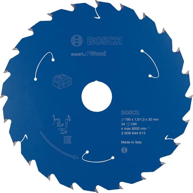 HW zoznam pre kotúčovú pílu Expert na drevo Optimalizované pre použitie s akumulátorovými strojmi. Pre hrubé, úzke rezy do všetkých druhov dreva a materiálov na báze dreva. Výrobca: Bosch GmbH, Max-Lang-Strasse 40-46, 70771 Leinfelden-Echterdingen, DE, +49 711 400 40990, kontakt@bosch.de