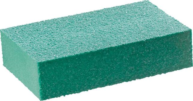 Brusná hubka Provedenie: 4-stranné povrstvenie, 80 × 50 × 20 mm. Použitie: Na leštenie a matovanie materiálov všetkého druhu (lak, kameň, drevo, plast, všetky kovy atď.), vrátane čistenia a ošetrovania. Upozornenie: Účinok sa zvýši vďaka prísade vody, mydla, pasty alebo petroleja. Vysoko výkonné brusné zrna v elastickej väzbe, úplne preložené, aby sa úplne spotrebovali. Prefarbené, nefarbí. Výrobca: Friedrich Müller Schleifmittelwerk GmbH, Kirchenweg 17-18, 67808 Ransweiler, DE, +49 63 61 74 59, info@schleifmittelwerk-friedrich-mueller.de