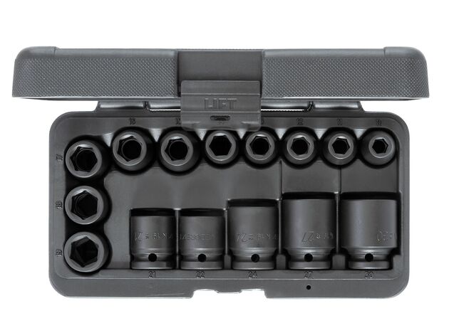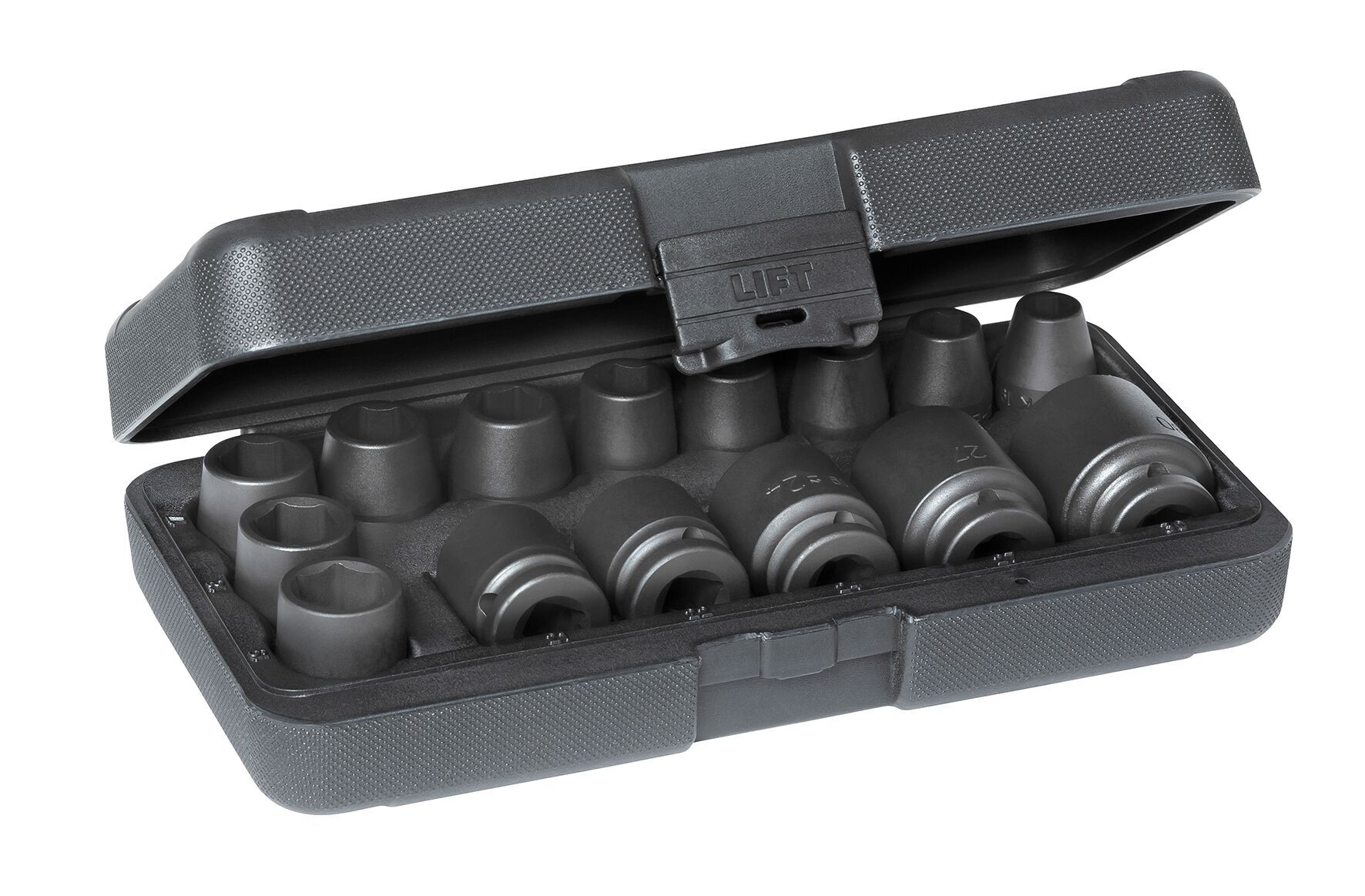 15 vložiek do skrutkovačov, ktoré sú vhodné pre všetky populárne pneumatické a elektrické skrutkovače, s vnútorným štvorcovým pohonom v súlade s normou DIN 3121 - G 12,5, ISO 1174, fosfátovaný povrch, v plastovom kufríku.