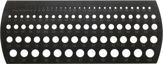 Milimetrová šablóna na otvory Provedenie: Z špeciálnej ocele, leštené na jemno. Výrobca: Einkaufsbüro Deutscher Eisenhändler GmbH, EDE Platz 1, 42389 Wuppertal, DE, +4920260960, webkontakt@ede.de