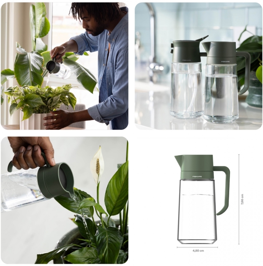 Kompaktná veľkosť s objemom 0,5 litra je ideálna na presné zalievanie menších a stredne veľkých rastlín. Karafa je vybavená špeciálne upravenou hornou časťou, ktorá umožňuje veľmi jednoduché plnenie priamo z vodovodného kohútika. Ergonomicky tvarované držadlo zaisťuje pohodlný a bezpečný úchop, čím zaručuje maximálnu kontrolu nad prúdom vody pri zalievaní aj tých najjemnejších kvetov.